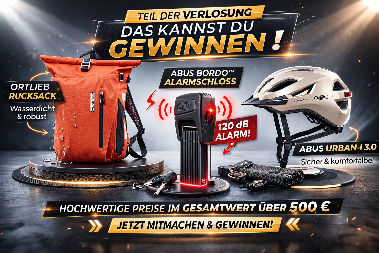 Zum Saison Opening 2026 verlosen wir hochwertiges Fahrradzubehoer im Gesamtwert von ueber 500 EUR.